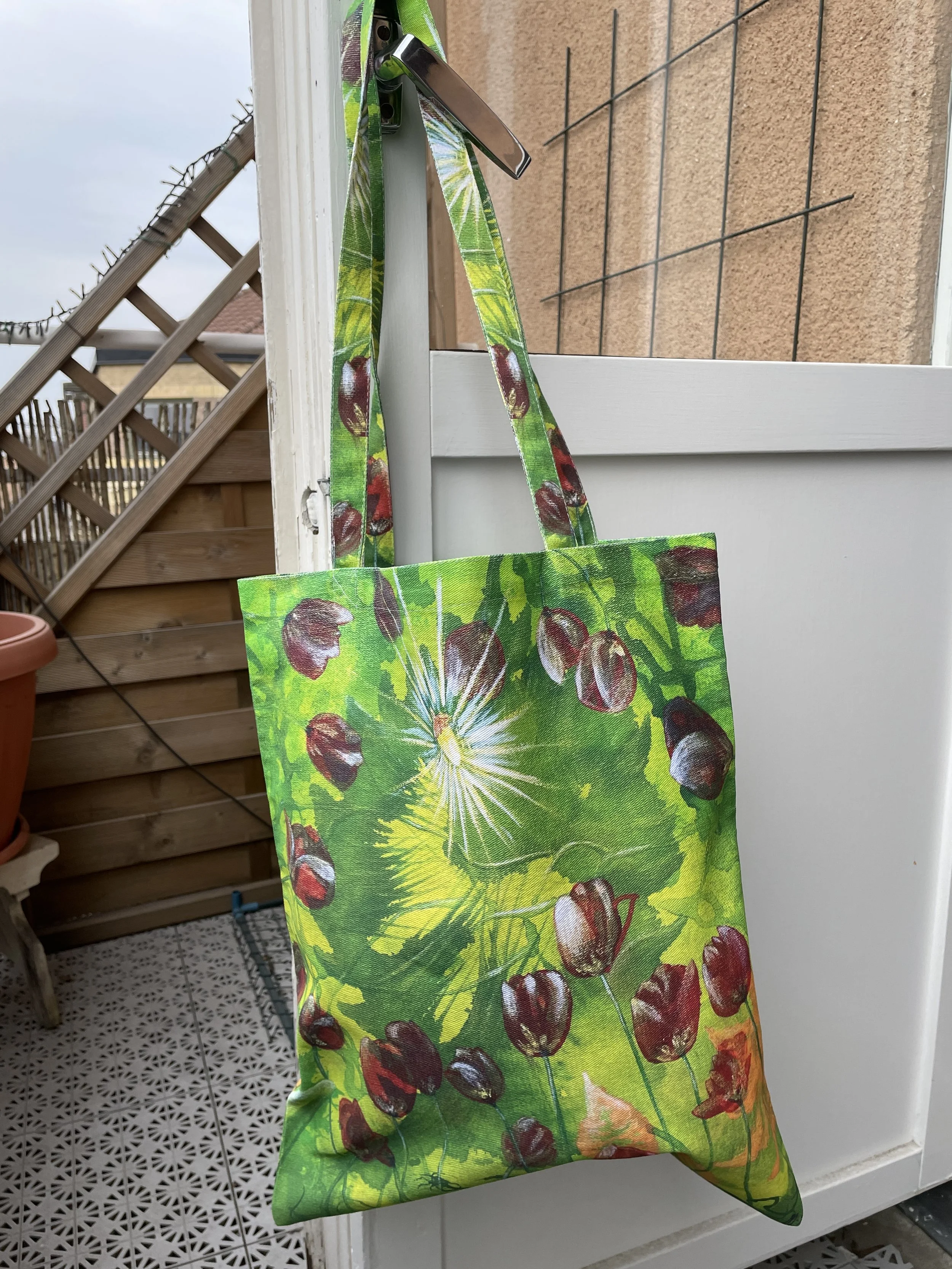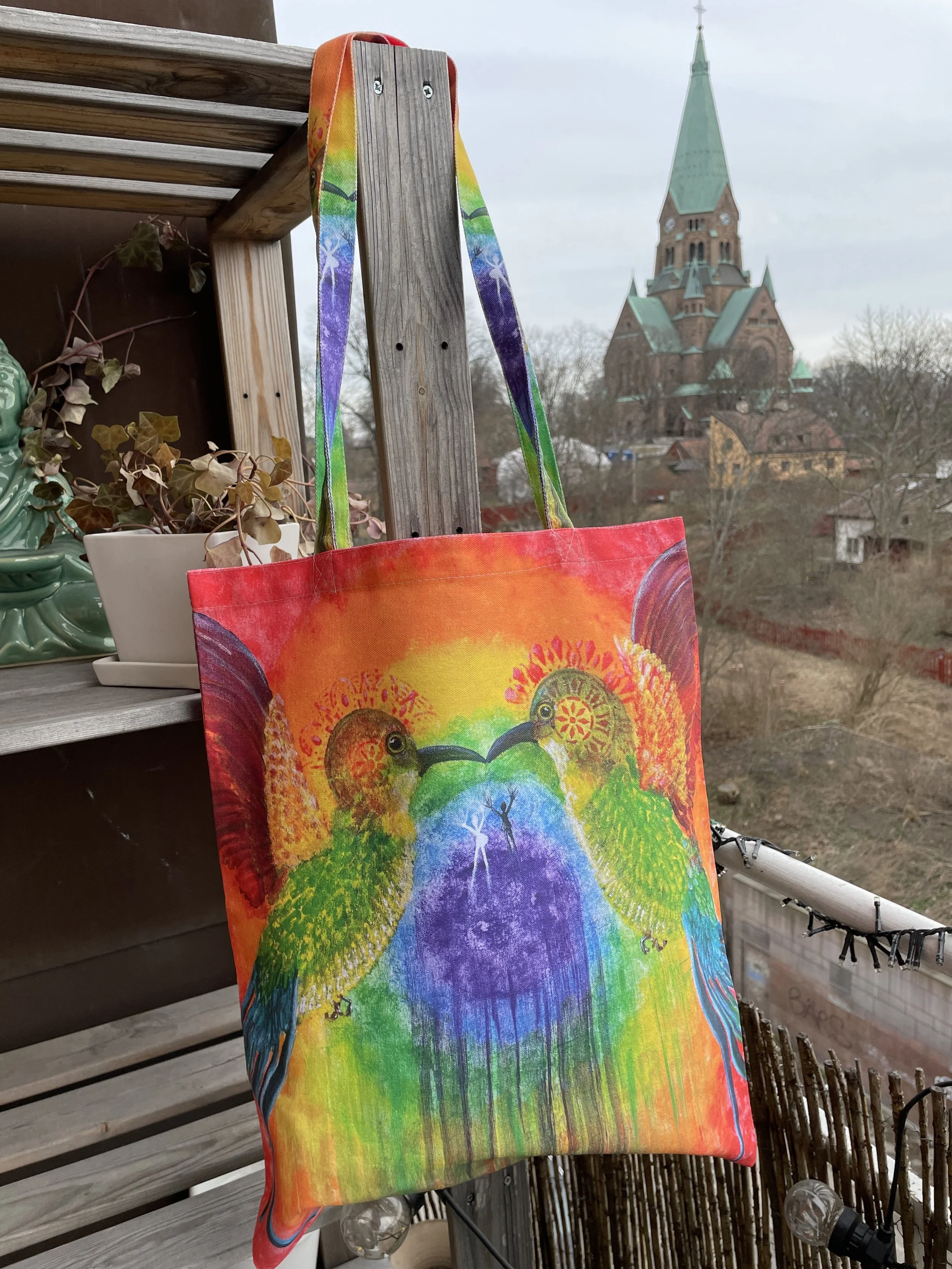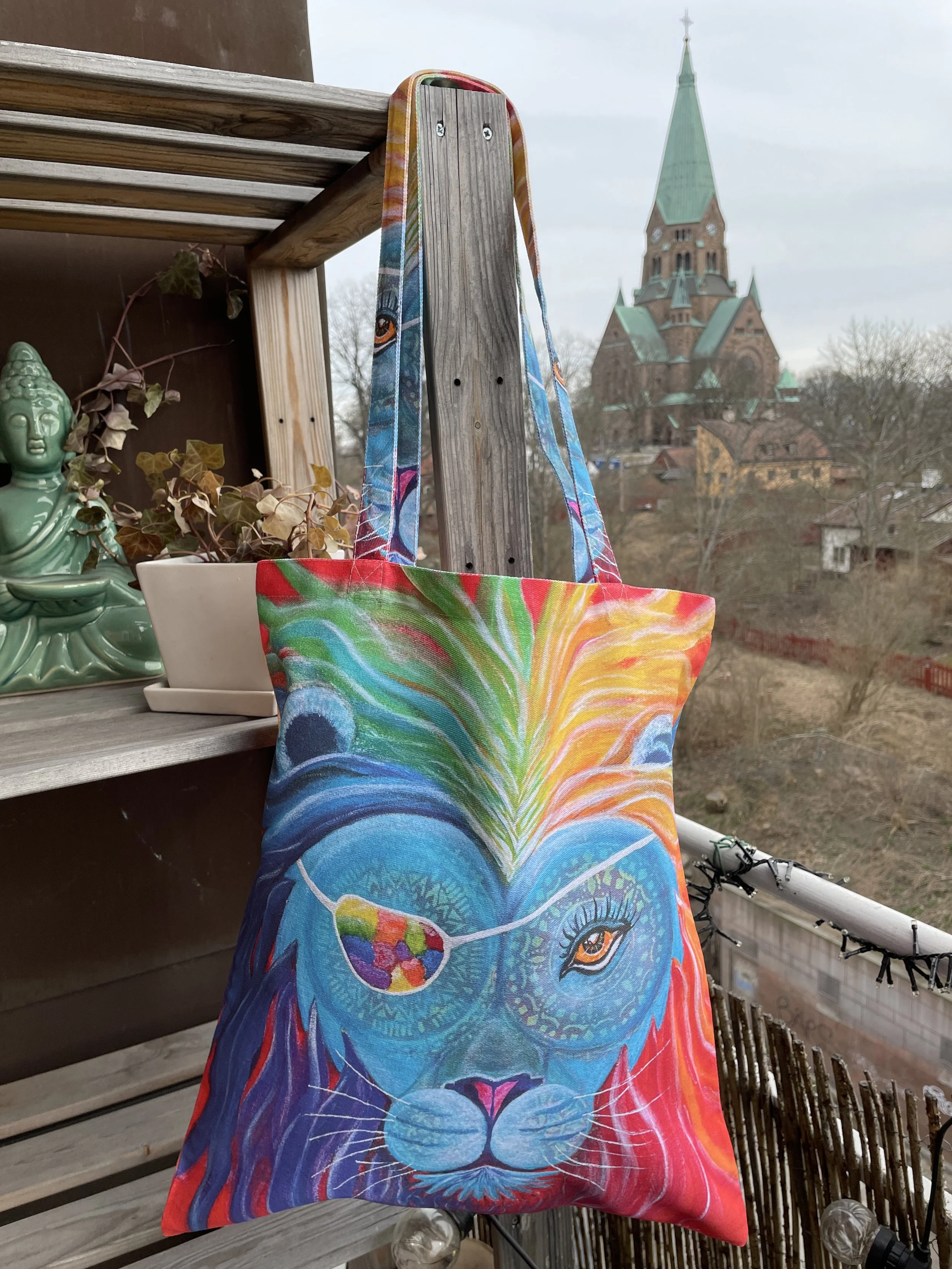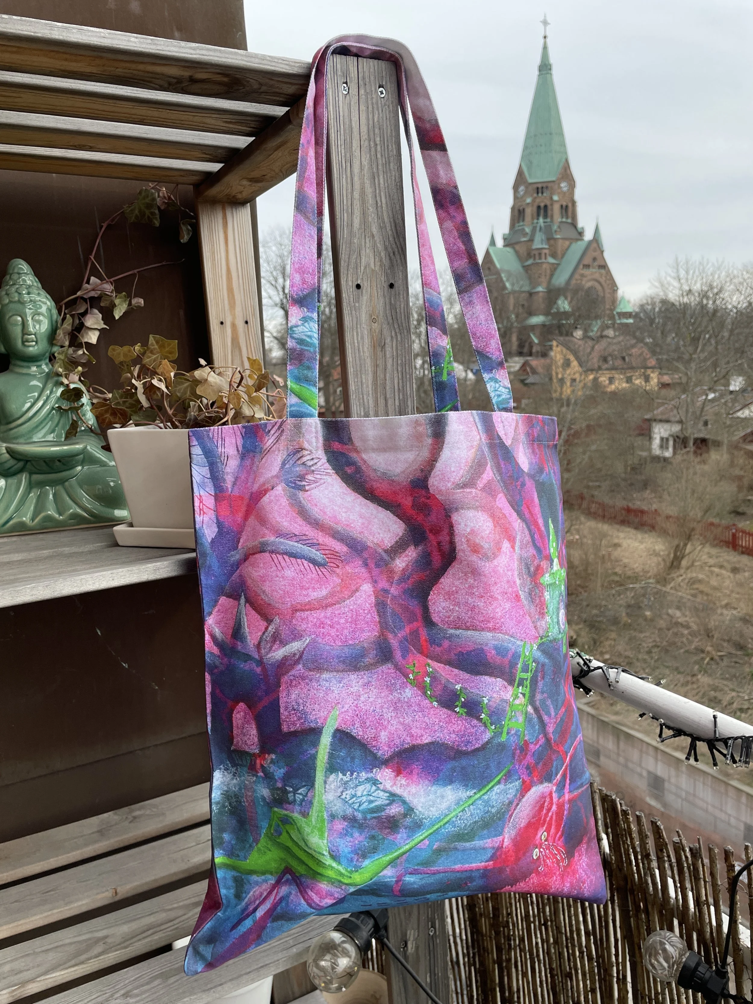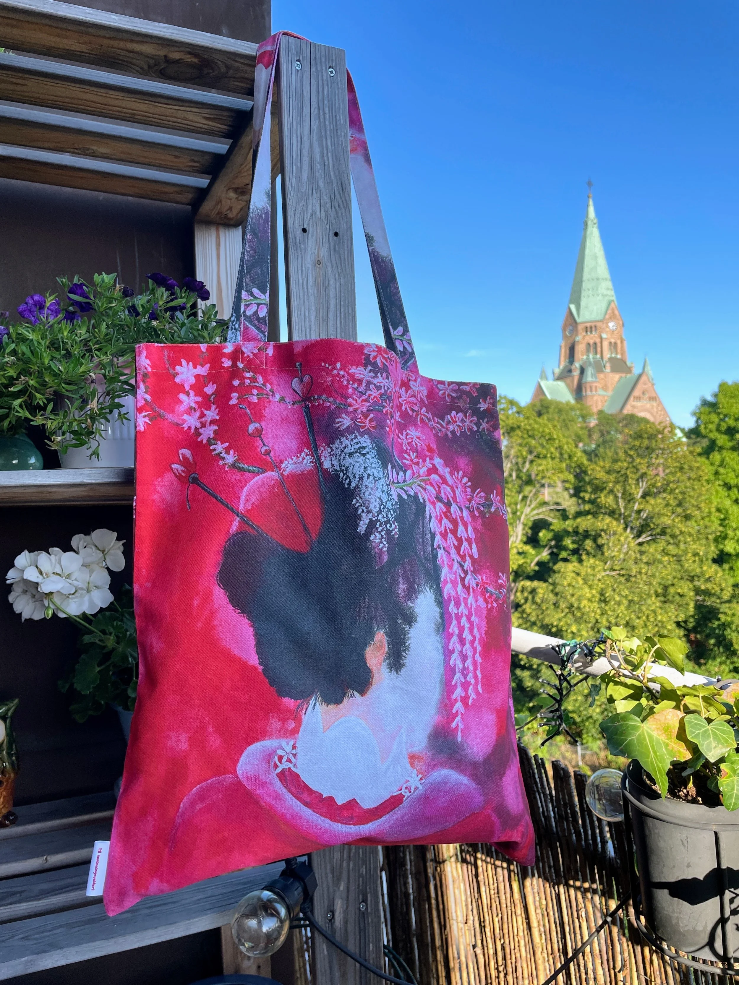 Tygkasse i bomull, 38 x 44 cm, tryck på båda sidor.